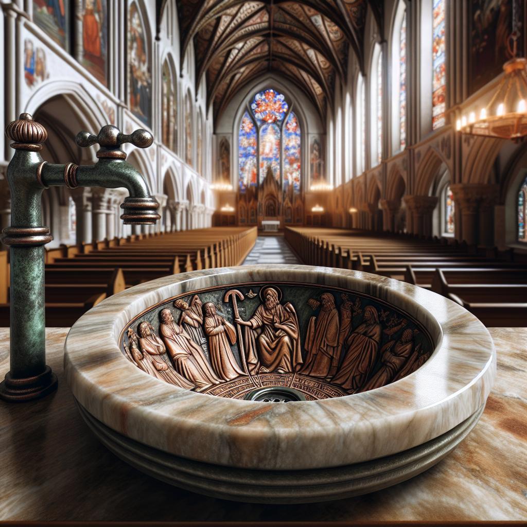 Kostelní umyvadla, známá také jako lavabo, mají své kořeny v antických časech, kdy se voda považovala za symbol čistoty a obnovy. V raném křesťanství byla umyvadla často umístěna v blízkosti vchodu do kostela, aby věřící mohli před mší provést rituál umytí rukou. V pozdějších obdobích se design umyvadel vyvíjel – od jednoduchých kamenných struktur po bohatě zdobené keramické kusy, někdy vykládané drahými kameny nebo malbami, které podtrhovaly duchovní význam místa.